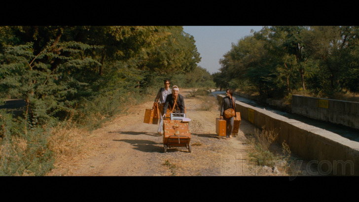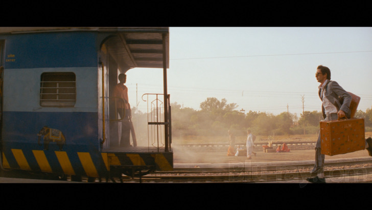 The Darjeeling Limited is presented in the aspect ratio of 2.40:1. Supervised and approved by director Wes Anderson, this new 4K digital master was upscaled from the 2K digital intermediate, which was created from scans of the 35 mm original camera negative. The original 5.1 surround soundtrack was remastered from the original digital audio files.This is the first film in the Anderson set I've reviewed that has a 2K DI upscaled to 4K, and there is arguably a bit less clarity and improvement in fine detail as a result, though what actually surprised me the most is that somewhat unlike The Life Aquatic with Steve Zissou 4K, and despite the above verbiage which is more explicit than in any of the other pamphlet verbiage I've covered so far, I frankly didn't see huge variances between this disc's Dolby Vision / HDR grades and the SDR grade on the 1080 presentation. There are certainly new highlights visible, especially in the outdoor material, but I was just bit surprised that some of the really lush tones like the yellows of The Hotel Chevalier sequence or some of the jewel tones especially in the Indian material were at least relatively similar looking. There are some nice fine detail improvements in picayune items like the gauze wrapping Owen Wilson's face and head for much of the story. Grain can be just slightly yellowish at times but resolves without any issues.