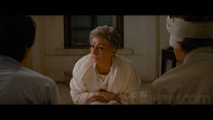 The Darjeeling Limited features another boisterous DTS-HD Master Audio 5.1 track, one that is populated regularly both by fantastic source cues (many from iconic Satyajit Ray and/or Merchant Ivory outings) and a wealth of wonderfully immersive ambient environmental effects. Both relatively cloistered environments like the train itself or the many outdoor vignettes offer consistent engagement of the side and rear channels. Dialogue is rendered cleanly and clearly throughout. Optional English subtitles are available.