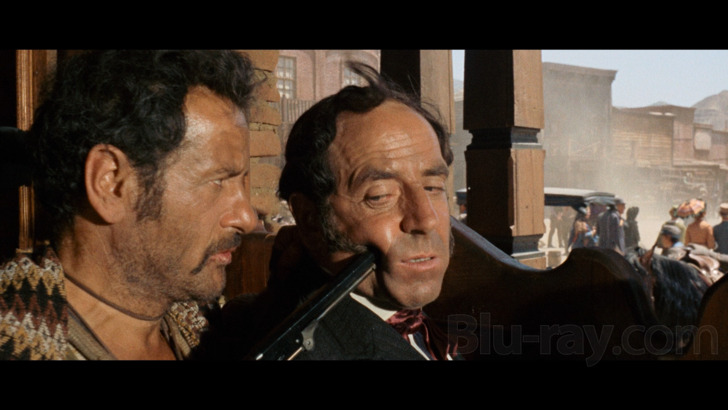 The Good, the Bad and the Ugly features DTS-HD Master Audio Mono and DTS-HD Master Audio 5.1 options. I actually recommend watching the film twice (or more) with each option, as they each have their pluses. I actually loved the focused energy of the mono track, something that can help Morricone's iconic cues sound less diffused. There's also surprising dynamic range on the mono track, something Svet mentioned as well with regard to the Kino Lorber mono offering. The 5.1 track significantly opens up both scoring and especially ambient environmental effects, while giving some added energy to the midrange and burst of LFE courtesy of gunfire. There's a very slightly boxy overly "wet" sound in evidence at times, probably more so on the mono track, that is probably simply indicative of the recording technologies of the day. Dialogue is rendered cleanly and clearly throughout. Optional English subtitles are available.