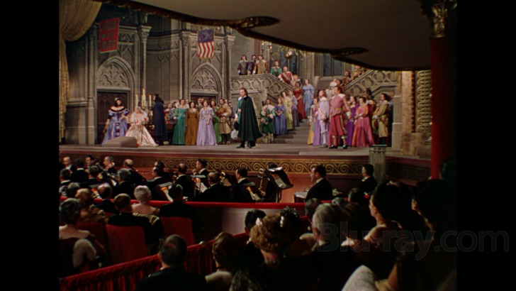 Advertised as a new 4K restoration from original nitrate Technicolor negatives, The Great Caruso looks as impressive as expected on yet another rock-solid 1080p transfer from Warner Archive. The period-specific costumes and backdrops sparkle with detail and clarity, from modest storefronts and shop interiors to the beautiful early processional of Enrico's youth and colorful stage performances of his adulthood. Depth is even impressive during wide shots, many of which feature eager audiences during the film's grandiose "live" performances, while close-ups boast tight image detail and a pleasing layer of natural film grain. Its Technicolor palettes looks fantastic with bright and vivid hues that absolutely defy the film's age, and its extremely clean appearance is thanks to Warner Archive's careful restoration work that combines their purist-friendly approach with manual cleanup to preserve its original textures. This is yet another top-tier effort for a film that, despite its resounding focus on sonic power, is often a joy to look at as well.