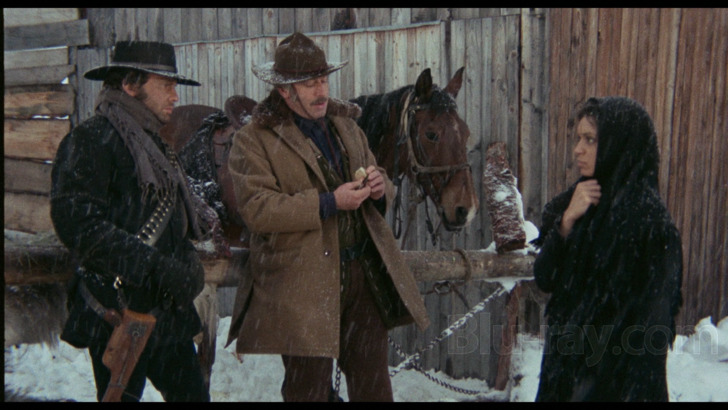 The Great Silence features DTS-HD Master Audio 2.0 Mono tracks in Italian, English and German. I frankly didn't spend a whale of a lot of time with the German track, but the English track is somewhat louder and noticeably brighter on the high end than the Italian, and it also shows more evident signs of age related wear and tear than the Italian track. To my ears, the Italian track, while maybe slightly thin sounding at times, provides the most balanced listening experience, including generally nice renderings of yet another remarkable score by Ennio Morricone. As befits an international co-production, sync can be loose, but dialogue is rendered cleanly and clearly throughout. Optional English subtitles are available.