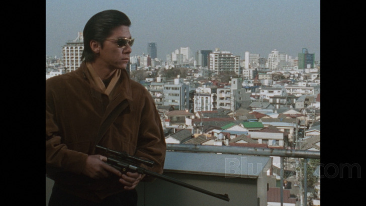 The Hitman: Blood Smells Like Roses features LPCM 2.0 audio in the original Japanese. This is one of the more vibrant soundtracks in Arrow's set, courtesy of both the use of some fun (if dated) music (Saijô was also a top charting singer in addition to be an actor), as well as glut of sound effects, notably guns piercing human flesh with all the attendant noises that makes. Dialogue is rendered cleanly and clearly throughout. Optional English subtitles are available.