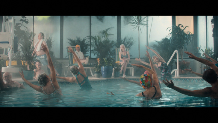almost sepia toned interior shots, while some of the outdoor material and even brightly lit scenes in the retirement home offer better clarity and