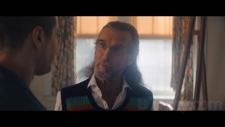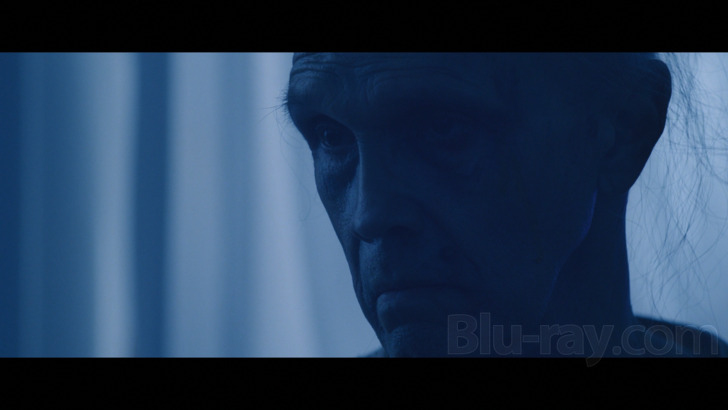The Home is presented on Blu-ray courtesy of Lionsgate Films an AVC encoded 1080p transfer in 2.39:1. As of the writing of this review there's no real authoritative technical information I could find online about the shoot, and the making of EPK on the disc never really clearly shows a camera model, but this is an evocative digital capture that is explicitly described in that aforementioned EPK as being "low contrast" and "dirty" looking, both of which may provide occasional obstacles for videophiles wanting their imagery to be crystal clear and gorgeously defined. The self-described "soft" aspects to the cinematography are probably most evident in the flashback material as well as a number of almost sepia toned interior shots, some of which can look downright fuzzy at times, while some of the outdoor material and even brightly lit scenes in the retirement home offer better clarity and consistent fine detail levels. The 4K release offers HDR (no Dolby Vision that my player identified) that does offer some really evocative highlights in some of the aggressively graded material, including some almost cobalt blue scenes on the "forbidden floor", but the palette is generally quite effectively vibrant (if often deliberately "wintry") in this 1080 presentation.