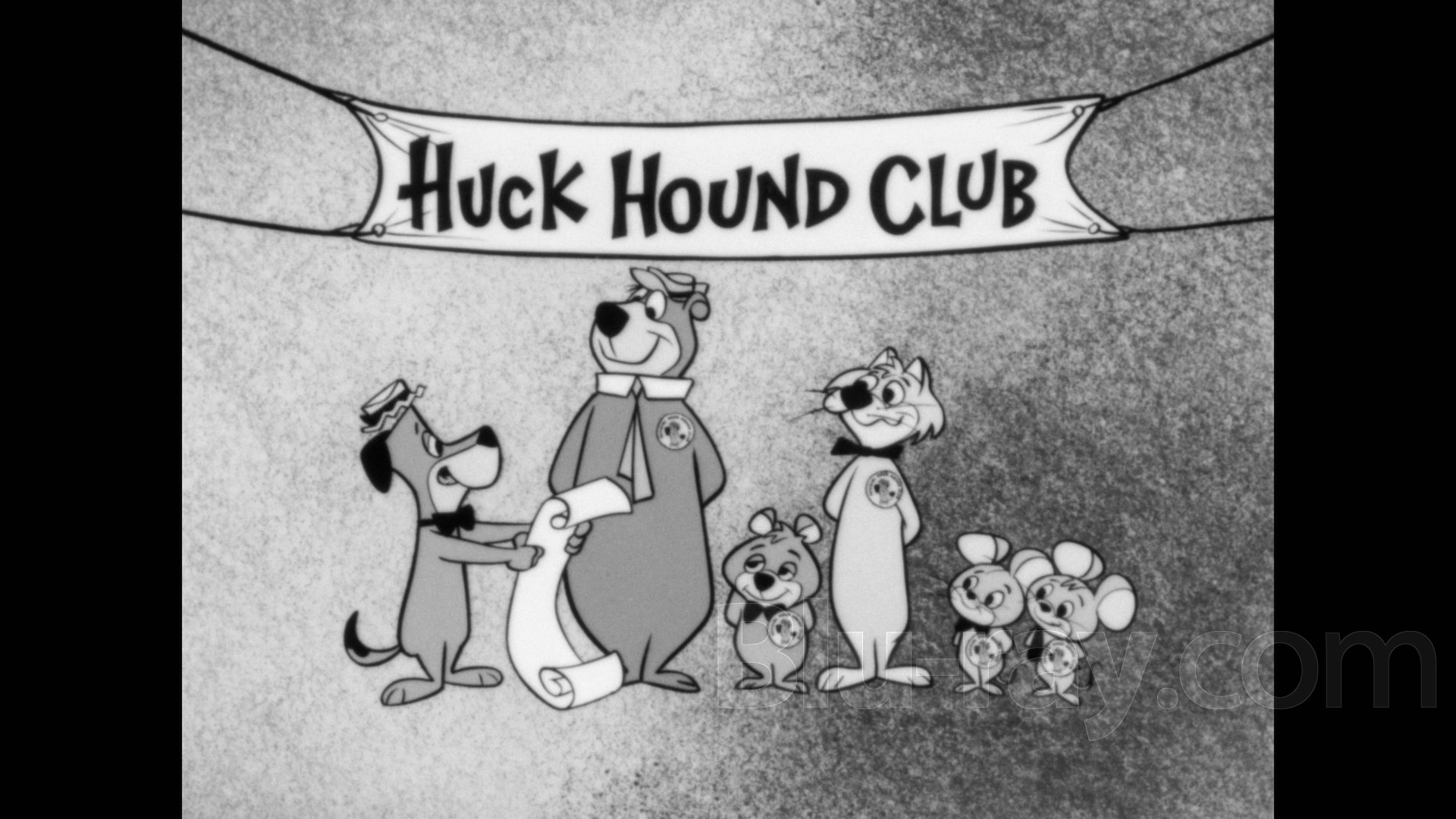 As expected, the varying main cartoon segments, bumpers, commercials, and other elements presented during each episode of The Huckleberry Hound Show were taken from a variety of best-available elements, many of which had likely not been viewed or touched in several decades but were nonetheless in rough shape. Luckily, the wide majority were sourced from the original negatives, including all but one of the main shorts featuring Huck, Yogi, Pixie and Dixie, and Hokey, although it's worth pointing out that the Yogi masters appearing during Seasons 1 and 2 were completed a few years ago for streaming on HBO Max and one was sourced from a 16mm internegative; in comparison to all the other more crisp and grain-heavy cartoons and bumpers, these are smoother in comparison but still look pretty good (see screenshots #6, 12, 22, 23, and 25 for samples). The only other "exemption from perfection" seems to be the Season 1 end credit sequence, whose only available source element was degraded black- and-white 16mm film.