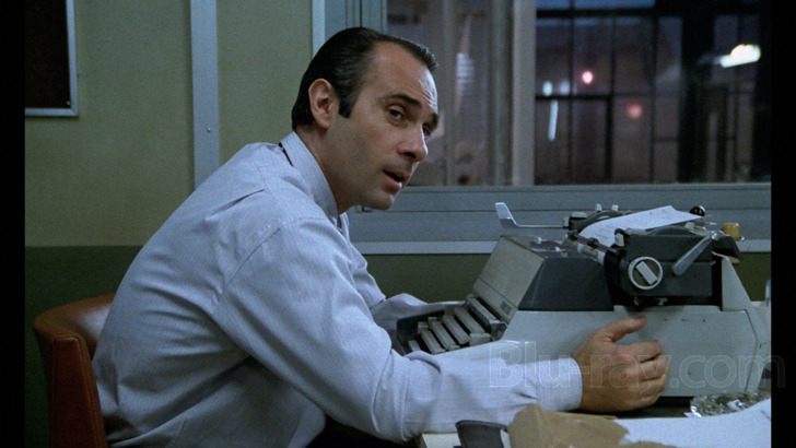 The Inquisitor is presented on Blu-ray courtesy of Radiance Films with an AVC encoded 1080p transfer in 1.67:1. Radiance sent check discs for the purposes of this review and so I'm not privy to any verbiage contained in an insert booklet, and their website frankly doesn't even offer much information, but there is a quick prefatory text card before the feature indicating this is an at least relatively recent 4K restoration off of the original camera negative. This is another shot on film entry that I suspect some may prefer watching in 1080 even though there's a 4K UHD version available, as the increased resolution of the 4K format can make the extremely heavy grain field almost appear swampy at times, especially in some of the dimly lit police office material. That tendency is probably a bit more subliminal in 1080, though that is not to suggest that grain is any less thick. Grain tends to resolve significantly more tightly (or at least appear to do so) in some of the cutaway scenes, like some quick interstitials at the beach and a few other moments. Still, even with at times very heavy grain, fine detail can be quite commendable in things like the herringbone pattern on Gallien's suit jacket. The bulk of the film, especially the police office scenes, are intentionally drab and maybe even dowdy looking, but there are more noticeably vivid pops of color in some of the "outside" material, including a very late vignette featuring an anecdote told by Chantal, which is bathed in an almost "golden hour" buttery yellow which is quite evocative.