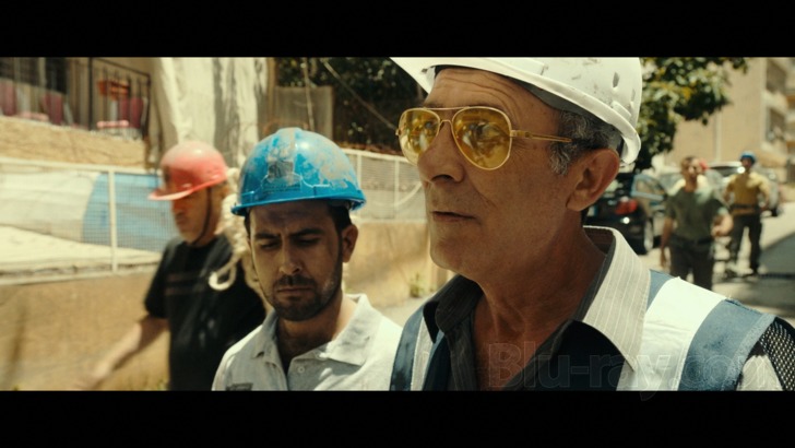 The Insult is presented on Blu-ray courtesy of Cohen Media Group with an AVC encoded 1080p transfer in 2.39:1. The IMDb doesn't list any relevant technical data, but your intrepid reviewer was able to track down this extremely interesting and informational interview with cinematographer Tomasso Fiorilli where he talks about shooting (mostly) with Arri Alexa XTs. This is by and large a really sharp and well detailed looking transfer, one that benefits from the bustling but typically brightly lit urban environment of Beirut. As is discussed in the above linked interview, there are a number of things like "jiggly cam" and over the shoulder shots where camera stability isn't optimal, and things can look slightly soft. Doueiri and Fiorilli are evidently big fans of lens flare (see screenshots 6 and 7, though the above linked interview even gets into that, with even more examples), and elements like that can tend to diminish image clarity at select moments. There is a slight chunky look to some of the most dimly lit interior moments (as in the bedroom of Tony and Shirine), where things have a kind of mottled yellow appearance and detail levels are a little less impressive than the bulk of the presentation.
