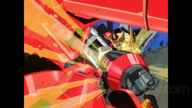 Arriving on Blu-ray from Discotek Media, The King of Braves: Gaogaigar is presented in 1080p MPEG-4 AVC encoded high definition in the original broadcast aspect ratio of 1.33:1 full frame. The series is beautifully presented with a native high-definition presentation. The encode is sourced from nice masters. The encoding looks excellent and capably showcases the animation.