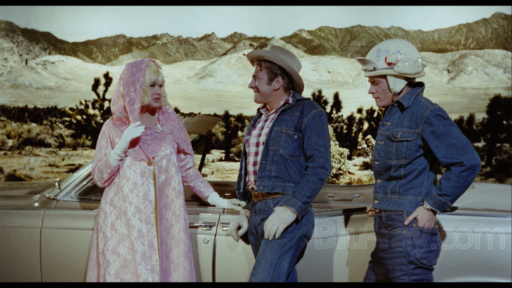 The Las Vegas Hillbillys features a solid uncompressed LPCM 2.0 audio track. It's nothing to write home about, but it's not bad either. Voices are clear, dialogue is intelligible, prioritization is spot on, and there's only a minimal amount of air hiss and noise floor mucking about. Effects are pretty thin and tinny, as is common of the era, but the music sounds quite good, with nice dynamics, especially considering the lack of LFE output. Will anyone be talking about the mix an hour after the credits roll? No chance. But for what the film's original sound design amounts to, the uncompressed track does its job well.
