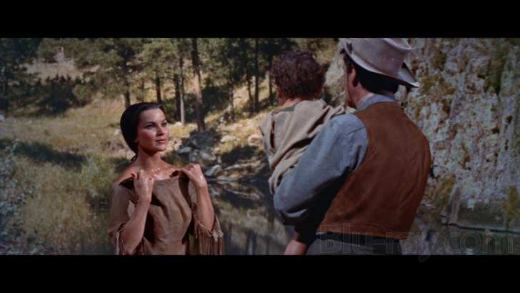 Believe it or not, the unsteady team eventually finds success despite their occasionally intense personal differences. Buffaloes are slain with reckless abandon and encounters with natives turn deadly as well. Charles gleefully guns down a raiding party and almost shows a shred of humanity when he can't bring himself to kill a young native woman (Debra Paget) and her son, taking them along instead. He shows his true colors by routinely having his way with her, whereas the more compassionate Sandy tries to treat her with respect and even entertains her little boy. Unsurprisingly, though, this personal conflict -- as well as the acquisition of a rare and valuable white buffalo hide -- only fuels the paranoia and recklessness of Charles. This leads to multiple threats of violence and stand-offs, one of which involves a visiting native friend of Jimmy. Yet through it all, their inventory balloons and it's soon time to cash in... but while the money is yet another tipping point for Charles, the biggest of all will be when there aren't any more buffaloes to kill.