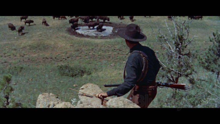 The Last Hunt was restored to the best of Warner Archive's ability in 2018, considering the boutique label was not yet able to work from original camera negatives (or conduct 4K scans) at this point in their existence. According to a very reliable source, the best available source element was a high-quality interpositive made from The Last Hunt's original negative in the late 1990s, which was scanned in 2K and treated to a round of careful manual cleanup. The end result is routinely impressive to a high degree and showcases the stellar on-location footage captured in South Dakota, which is only interrupted by a handful of dodgy "day for night" scenes and low-light sequences that do battle with increased grain and noise levels. Remarkably, though, it's a decently consistent presentation even during a few more challenging moments, such as the opening buffalo stampede and its accompanying walls of dust, which are encoded smoothly and don't suffer from any obvious signs of macro blocking or other compression artifacts. In fact, the only possible hiccup occurs at exactly 96:57 (screenshot #21), where a plume of smoke near a cave entrance features odd blue speckling that goes away almost as quickly as it arrives. This is still an overwhelmingly good transfer under the circumstances, although the boutique label's increased vault access would surely produce an even better result today.