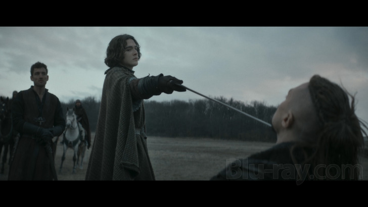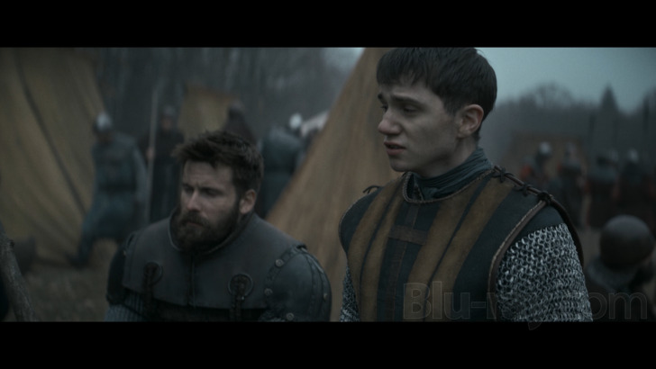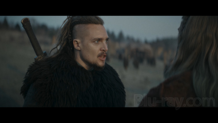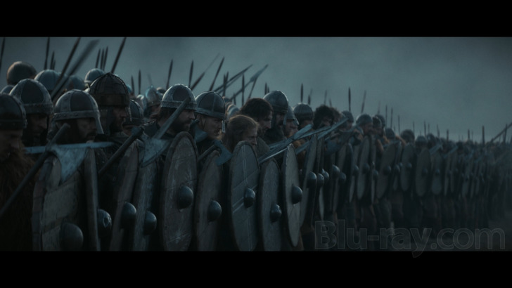 The English DTS-HD Master Audio track is solid, but it is rather front-heavy. Dialogue is typically front and center, and sits nicely on top of music, sounds of battle, and other environmental sounds. The bass presence is sufficient to add the needed weight to marching feat, thundering horsehooves, and crushing implements of destruction. Immersive moments are present but are employed judiciously, such as when Uhtred is blindsided during Aethelstan's treachery, and later during his crowning to create a sonically cavernous space. The often sparse score is reproduced with excellent clarity and resides largely in the fronts as well, though there are moments when it slowly spreads and swells in the surrounds. Appropriately enough, the climactic Battle of Brunanburh is also the unquestioned highlight of the track, but it still remains steadfastly within the parameters of the sound design for the film. More subtle and utilitarian than extravagant, it's a track that demonstrates competence rather than seeking to impress. As with the video transfer, it is very much in keeping with the preceding five seasons.