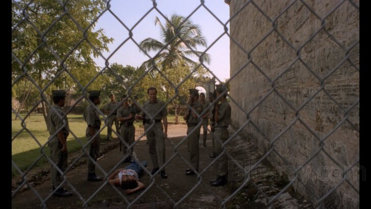 Midnight Express, and after that, it would have been impossible to defend it). At the airport of an unnamed Caribbean country, a drug trafficker places a pack of cocaine into the bag of a beautiful American girl (Melissa Palmisano) accompanied by her boyfriend. A few minutes later, the girl is detained, her shocked boyfriend runs away, and, while various men in uniforms scream their lungs out, the drug trafficker successfully moves through border control. Soon after, the girl’s father, Cliff Gaylor (Oliver Tobias), a famous NFL player, is informed about the incident, and, without wasting any time, he jumps on the next plane heading south with enough cash to free her.