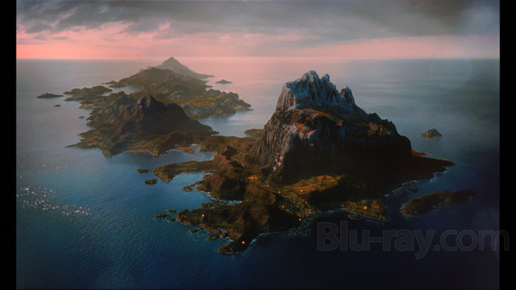 The Legend of Ochi is presented on Blu-ray courtesy of A24 with an AVC encoded 1080p transfer in 1.67:1. As of the writing of this review, the IMDb specifies a 4K DI without offering any information on the camera, but there are several online sources, including interviews with Saxon and cinematographer Evan Prosofsky, where they mention the Arri Alexa as well as some vintage original Bausch and Lomb Baltar lenses from the 1930s. It's also interesting to note that Saxon, who aided in the film's massive amount of matte paintings, also overtly mentions in interviews how "after all the matte paintings and everything, we print film stock and rescan". The result is a really beautifully organic looking presentation that has obviously had its imagery if not any actual creature effects digitally altered (as is clearly shown in the making of featurette), but which has a much more naturally filmic look than typical digital capture with digital grain. The vintage lenses definitely give a somewhat softer look at times, but I found it incredibly evocative and completely supportive of the film's rather unique production design and overall "look". The palette is gorgeously suffused throughout. Fine detail on everything from costumes to the little Ochi's bristly fur is excellent.