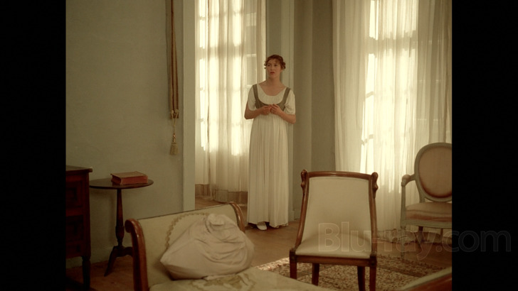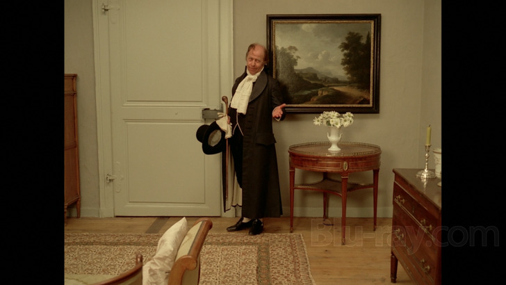 The Marquise of O is presented on Blu-ray courtesy of Film Movement's Film Movement Classics imprint with an AVC encoded 1080p transfer in 1.33:1. I am assuming this is the same transfer as Film Movement offered in 2015, especially since this has a 2015 trailer as a supplement. There are both pluses and minuses to the transfer. The palette is really appealingly suffused throughout, and detail levels are also often very expressive on the luxe costumes and production design. The cinematography is often incredibly lush courtesy of ace lenser Néstor Almendros (Academy Award winner for Days of Heaven). That said, there's a somewhat digital appearance and while there is a grain field noticeable, this looks like it may have had some filtering applied (something that may be contributing to that aforementioned digital look).