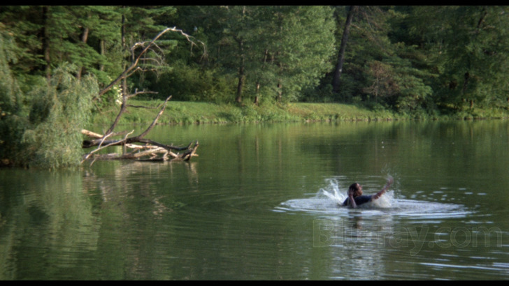 from its 35mm original camera negative." The viewing experience maintains a steady sense of color, leading with distinct greenery around the house,