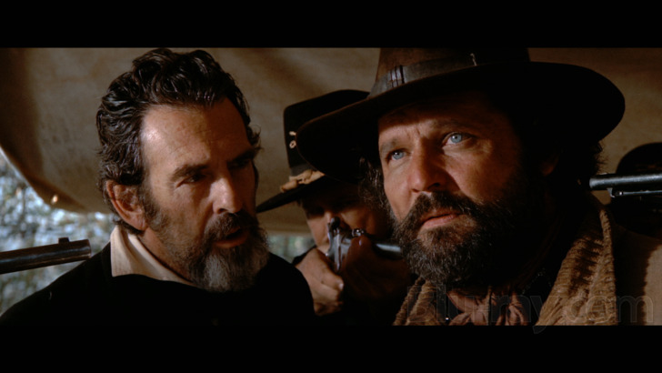Once again, WB's recent press release offers no real information regarding The Outlaw Josie's new restoration for this 4K edition and, while I can't be sure that it got the same 8K scan granted to Dirty Harry, the resulting picture shows many similarities. To be fair, Warner Bros.' 2011 Blu-ray was a very capable effort for its time and rightfully awarded 4.5/5 stars by Kenneth Brown, but in direct comparison this 2160p/HDR10 transfer easily rides right past it. The Outlaw Josey Wales has no shortage of jaw-dropping outdoor vistas courtesy of cinematographer Bruce Surtees, who provided similarly impactful panoramas of San Francisco in Dirty Harry and would collaborate with Clint Eastwood on many other productions including Pale Rider. Simply put, these natural Earth-toned landscapes are alive with detail and color, often showcasing plenty of depth that stands in contrast to other locations (many of them indoor) where Surtees' trademark use of strong silhouettes and minimal artificial light creates a flat but striking atmosphere.