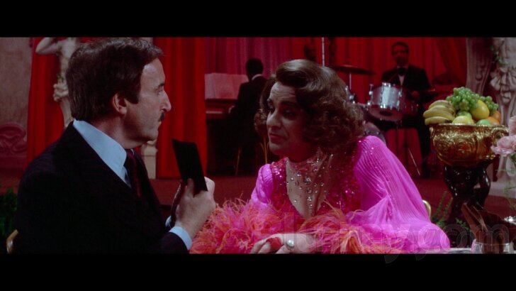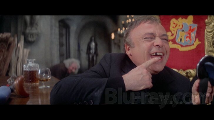 We posted an early review of the Blu-ray release of The Pink Panther Strikes Again, and if you have seen it, you already know that the 4K restoration represents a big upgrade in quality over previous presentations of the film. However, there is one segment where ideally more should have been done to ensure that the visuals are as convincing as they could be. It is the segment where Peter Sellers attempts to enter the ancient castle. In several frames, always on the right side of each frame, there is an unmissable color fading, accompanied by very light color pulsations. In native 4K, the visuals boast very nice delineation, clarity, and depth. However, in a few areas -- the castle footage comes to mind again -- some of the grain can appear a tad overexposed. On my system, all of the darker footage looked good. Color reproduction and balance are very convincing, too. I do not think that the expanded color gamut brings significant improvements. On the 1080p presentation, all primaries and supporting nuances still look terrific. The most notable discrepancy I noticed was during the nightclub footage, where the reds and some supporting nuances looked gorgeous in native 4K. There are no traces of problematic digital corrections. I noticed a few tiny blemishes, but there are no large cuts, debris, warped or torn frames to report.