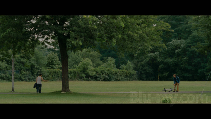 Shout Select's recent release is a two-disc 4K Ultra HD Blu-ray/standard Blu-ray combo. (My copy didn't come with a slipcover.) Derek Cianfrance approved a new 4K restoration that's the basis for the UHD and 1080p Blu-ray. The former is presented in Dolby Vision (HDR10 compatible). According to American Cinematographer (AC), director of photography Sean Bobbitt filmed TPBtP in the 2.40:1 ratio on 2-perf Super 35 mm using a handheld Arricam Lite. The negative film consisted of Kodak Vision2 50D 5201; Vision3 250D 5207 and 500T 5219. The camera package comprised Cooke S4 prime lenses (ranging from 12 mm to 135 mm) and an Angenieux Optimo 24-290 mm zoom lens. AC writer Michael Goldman profiled the film for the April 2013 issue of the magazine. Bobbitt told Goldman that he wanted to obtain a particular warmth and softness in the images that was not as sharp compared to other lenses. In watching the Universal/Shout BDs and Shout 4K, I feel those qualities are reflected in the transfers. Imagery doesn't appear too sharp (even on the 4K). Goldman also interviewed Cianfrance for his article. The director wanted to film in Schenectady, New York during the summer because the forest has an "incredibly green" tone. This is especially prominent on the 2160p transfer as the pine trees are lush with a darker green that's more solidly defined than the two HD transfers (e.g., see Screenshot #37).