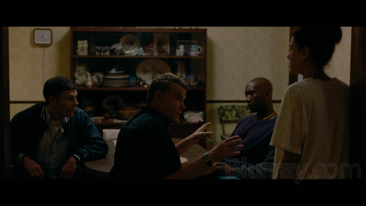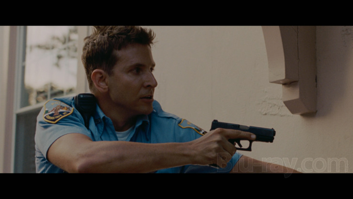 Grain prominence is very similar in Shout's UHD and standard Blu-ray presentations. I didn't see it spike or appear more coarse on the 4K. I noticed it often in close-ups of Luke and Avery Cross (Bradley Cooper). There's a good smattering of grain in a wide shot during a diner scene with Luke and Romina (Eva Mendes) in conversation. (See frame grab #19.) Black are deep in both transfers but they're sometimes super deep (without looking crushed) on the 4K. For instance, see the silhouettes of Jason (Dane Dehaan) and AJ (Emory Cohen) in Screenshot #34. I didn't spot any source flaws on Shout's 4K or Blu. (No dirt or specks.)