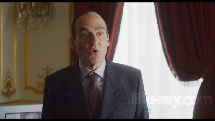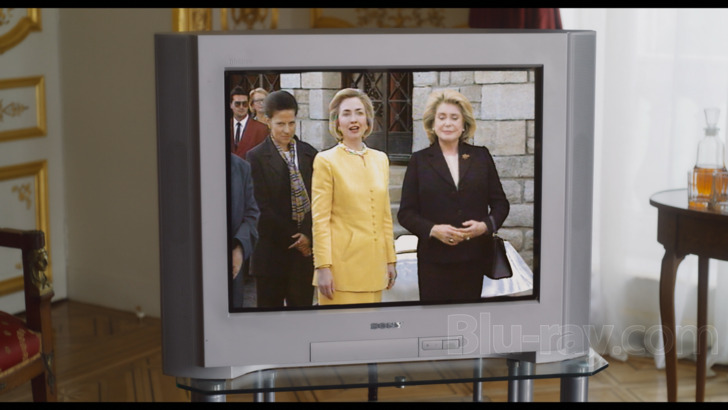 The President's Wife is presented on Blu-ray courtesy of Cohen Media Group's Contemporary Classics imprint with an AVC encoded 1080p transfer in 1.85:1 (both real and manufactured "archival video" can be in Academy Ratio). The IMDb lists the Red Gemini but fails to specify the resolution of the DI as of the writing of this review. This is a nicely sharp and well detailed looking presentation (save for the intentionally shoddy looking "archival video" moments), with some commendable fine detail levels on everything from facial features to the rather luxe at times sets and costumes. The palette is basically a candy colored array a lot of the time and is consistently quite vivid. There are a few passing moments, as in a club scene, where shadow detail can be a bit lacking.