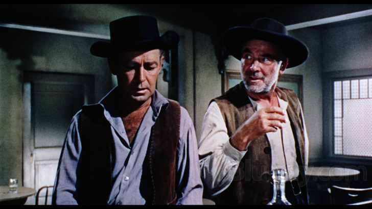 Take a look at the key art for The Proud Rebel included above this review. Remind you of anything, specifically maybe another pretty legendary film starring Alan Ladd? The art's emphasis on a man and young boy will probably immediately bring Shane to mind, though kind of saliently in this case the little boy in the art is Alan Ladd's actual son, David, making his film debut in this sweet feature which offers the Ladds as father and son. The film is admittedly on the saccharine side at times as it details the travails of a former Confederate solider named John Chandler (Alan Ladd), whose young son David (David Ladd) has gone completely mute after witnessing the horrifying death of his mother at the hands of Union soldiers. John is on the hunt for a "cure", something that brings him north and west to Illinois, where he's almost immediately caught up in that venerable plot trope of Westerns, a villainous type, Harry Burleigh (Dean Jagger), attempting to engineer a land grab from a feisty widow, Linnett Moore (Olivia de Havilland, once again "deglammed"). Hmmm. . .troubled vet widower with equally troubled little boy meets and helps a no nonsense widow — you can probably guess the rest. The film has another hugely enjoyable supporting cast in a western from this general era, including stalwarts Cecil Kellaway, John Carradine, and a very young Harry Dean Stanton (still credited as Dean Stanton).
