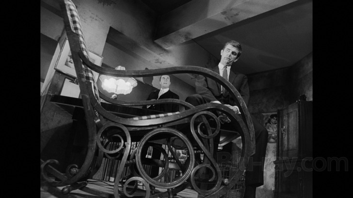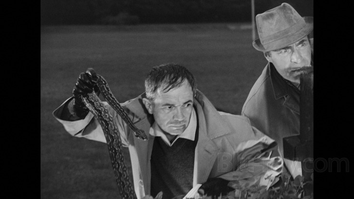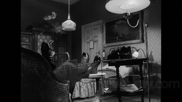The Racetrack Murders is presented on Blu-ray courtesy of Eureka! Entertainment with an AVC encoded 1080p transfer in 1.33:1, with the series kind of inexplicably (even according to some of the supplements) reverting back to quasi-Academy ratio, perhaps due in part to presumed future television broadcasts. This is another really nicely detailed transfer a lot of the time, especially in some of the fun extreme close-ups (see screenshot 2). There can be just a slightly cartoonish look at times due to some of the lighting choices (as in those aforementioned low lights illuminating villainous faces), but contrast is generally solid, with nice blacks and well modulated gray scale. Once again very minor signs of age related wear and tear can be spotted. Grain resolves without any issues.
