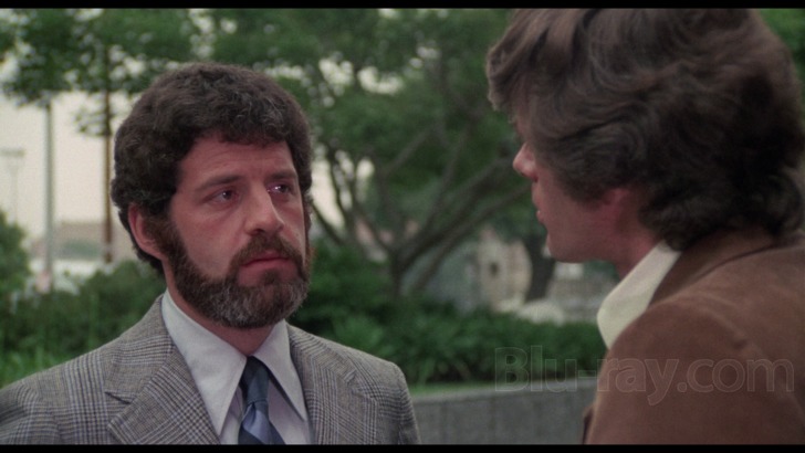 Billed as a "Brand new HD master from a 4K scan of the original 35mm negative by Paramount Pictures Archive," "The Reincarnation of Peter Proud" arrives on Blu-ray with an AVC encoded image (1.85:1 aspect ratio) presentation. The feature has surely never looked this good since its original theatrical release, delivering a refreshed viewing experience that supplies detail throughout. Best with facial and costuming textures, clarity is quite good here, also extending to exterior distances, with urban and rural visits dimensional. Colors are secure, with healthy primaries working a generally colder palette. Environmental moods are preserved, delivering precise greenery. Delineation is communicative. Grain is fine and filmic. Source is in good condition, but the first reel has a few thin, twitchy scratches that run right down the middle of the frame.