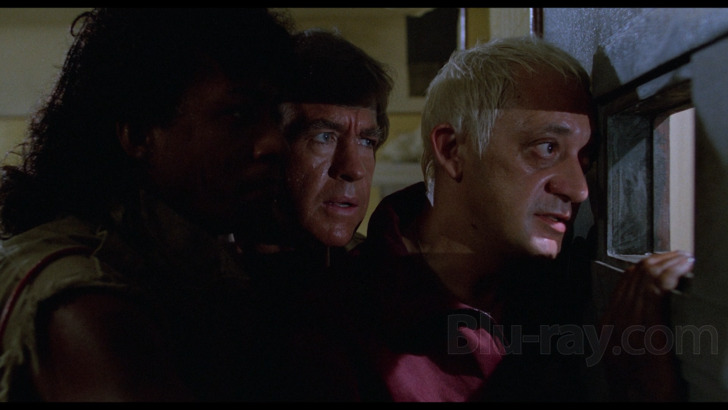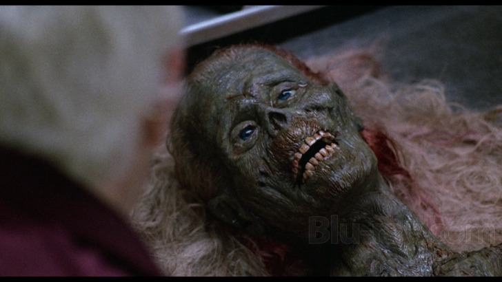 The Return of the Living Dead is presented in its original aspect ratio of 1.85:1 with original* mono and remixed 5.1 audio.Well, whatever story is behind the music element and whatever disappointment it may engender, from a visual standpoint this 4K upgrade is quite striking, though some of this transfer's strengths can be intermittently masked (kind of both figuratively and literally) during opticals or superimposed titles. Once again a rather heavy grain field may make Arrow's 1080 presentation preferable for some, but on the whole (and as someone who frankly does prefer the look of heavy grain at lower resolutions at times), compression looks well handled, even in some darker moments. The HDR / Dolby Vision grades do add some vibrancy, but they may also tend to point up a kind of grayish undertone that tends to suffuse some of the early material in particular. While this unsurprisingly looks generally quite like the Shout! Factory 4K UHD release, those doing side by side screenshot comparisons will be able to note some brightness and even color temperature variations, however slight. Interestingly I wouldn't argue that the HDR grades really markedly improve shadow definition, and some of the basement material in particular struck me as not offering very much shadow detail. Fine detail on practical sets and costumes is typically great.