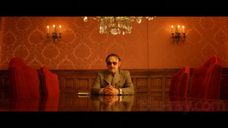 The Royal Tenenbaums is presented in the aspect ratio of 2.40:1. Supervised and approved by director Wes Anderson, the new 4K restoration presented on the 4K Ultra HD disc was created from the 35 mm original camera negative. The original 5.1 surround soundtrack was remastered from the 35 mm magnetic track. The feature is presented in Dolby Vision HDR (high dynamic range) on the 4K UHD disc and high definition SDR (standard dynamic range) on the Blu-ray.At the risk of sounding like a broken record with regard to the quality of the 4K transfers offered in Criterion's Wes Anderson set, The Royal Tenenbaums is another great example of how much both Dolby Vision / HDR grades and a 4K scan can materially alter the presentation, in my estimation for the better even given the fact of an excellent 1080 transfer. The kind of "golden hour" yellow-orange hues that suffuse Anderson's "vision" for the presentation have incredible highlights in this version that offer a (literally) wider spectrum of hues while still maintaining the overall burnished saffron tones. Other elements like Ben Stiller's bright red track suit pop with considerable authority and arguably even more vivid suffusion than in the 1080 version. Teals and light blues in some of the outdoor material and pinks in a lot of the Gwyneth Paltrow vignettes are also subtly enhanced. What I personally was reminded of especially courtesy of the Dolby Vision / HDR grades is how impeccably color designed the entire film is, with what are almost tonal (as in hues) leitmotifs for several characters. Fine detail can see some improvement, but seemingly by design a lot of the framings here tend to offer slightly out of focus backgrounds, which can at least affect those parts of the frame. Grain resolves organically throughout.