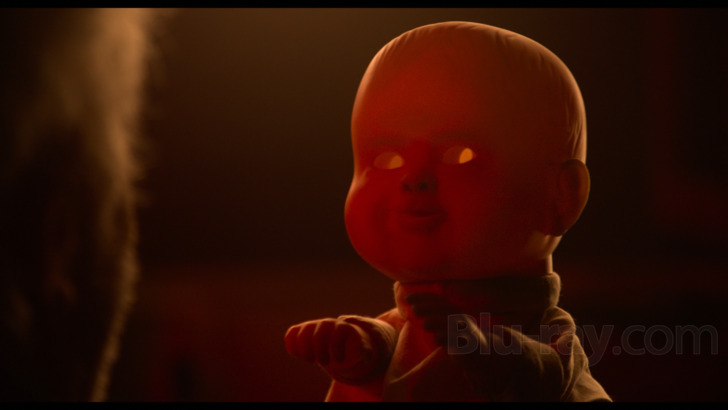 The 5.1 DTS-HD MA mix for "The Rule of Jenny Pen" works with the vivid sound design of the feature, as the production is out to generate aural malevolence to help support Dave's war on the residents and Stefan's diminishing brain activity. Dialogue exchanges are clear, managing accents and different forms of intensity as tempers flare. Scoring supports with sharp instrumentation, and soundtrack selections are defined, with crisp vocals. Surrounds are active, exploring musical moods and atmospherics with community gatherings. Sound effects are also intense, playing with the psychological experiences, using panning effects at times. Low-end is heavy, rumbling along with mental breakdowns and Jenny Pen appearances, working with ideas on nightmarish pressure concerning the puppet and its evil presence.