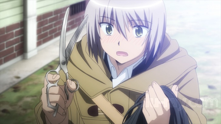 Even those who have become used to both fictional and factual weirdnesses accumulating around my hometown of Portland may have been thrown for a momentary loop by a news story that got quite a bit of press and broadcast time not just here, but nationally, when an obviously troubled young man started riding Portland’s bus system and engaged in a number of questionable activities which included cutting the hair of women seated in front of him. (Explicit details won’t be posted here, but that was just the beginning of his escapades, which included a certain amount of—how to put this delicately—self-gratification.) Hair cutting might seem like a decidedly odd fetish, even by Portland standards, but one need look no further than The Severing Crime Edge to figure out it’s an activity that evidently fuels the psyches of a certain element of the global populace. This is one of those convoluted anime that seems to be cobbled together out of completely odd and disparate elements, and that turns out to be both a good thing and a bad thing as the series moves through a rather unlikely assortment of plot points. Those who have grown tired of too many anime traipsing over completely rote territory will probably at least give grudging kudos to The Severing Crime Edge for being something a bit different, but that very difference is so peculiar at times that the series’ tone seems to shift arbitrarily, leaving the viewer stranded in a morass of bits and pieces of various genres.