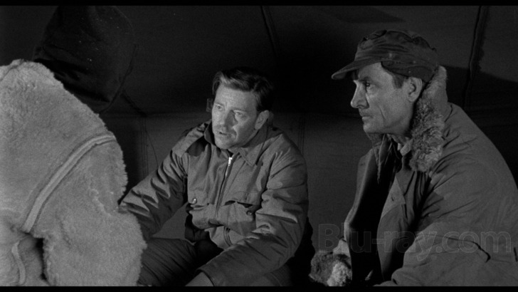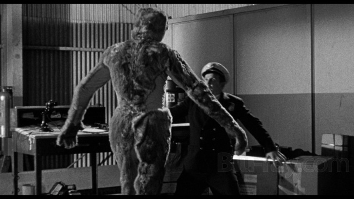 The image presentation (1.37:1 aspect ratio) for "The Snow Creature" is listed as "scanned and restored in 4K from its fine grain master." While not a film built for detail, the viewing experience offers texture on skin particulars and monster appearances, with the Yeti costume retaining touches of fibrousness at times. Interiors around caves and offices maintain decent depth, and dimension is found with limited outdoor events. Black and white cinematography maintains balance and stability. Delineation preserves evening action. Grain is capably resolved. Source is in good condition.