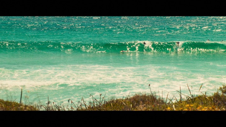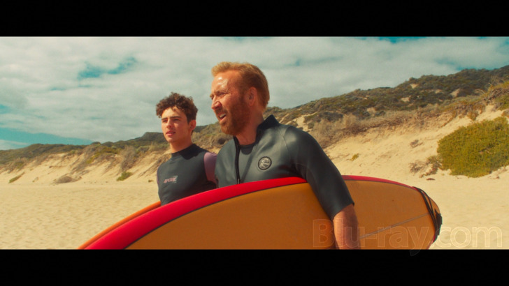 The Surfer has a nicely immersive Dolby Atmos track which provides a literal wash of sound even before any imagery starts, with redolent waves crashing all around the listener. The bulk of this story actually plays out on a beach, or at least oceanside in a parking lot, and as such background ambient environmental effects are a near constant, even when the focal character starts to get a little gonzo. A really engaging score by François Tétaz also nicely engages the surround channels. Dialogue is rendered cleanly and clearly throughout. Optional English and Spanish subtitles are available.
