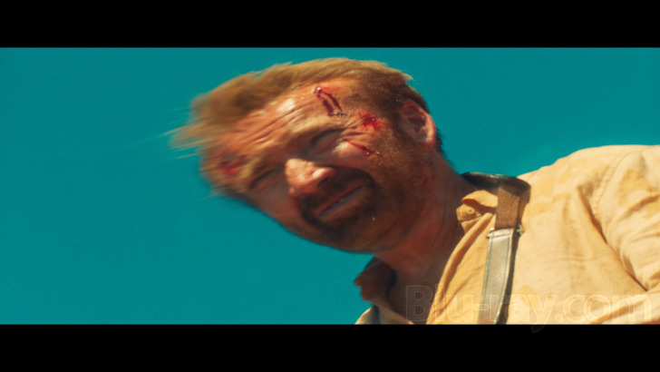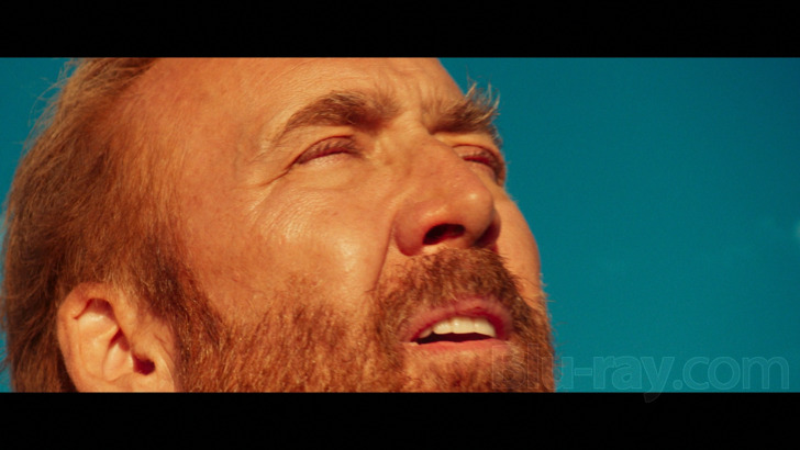 The Surfer is presented on Blu-ray courtesy of Lionsgate Films with an AVC encoded 1080p transfer in 2.39:1. This shoot utilized the Arri Alexa 35 and had a 4K DI, according to the IMDb. The Arri Alexa 35 debuted a few years ago with considerable fanfare about its new image sensor and some built in "Arri textures" (supposedly?) offering the look of natural film grain. The cinematography here is undeniably one of the film's absolute strengths, and while I'll cut to the chase and definitely recommend those interested in this film to opt for Lionsgate Limited's 4K release (linked to above) for its really gorgeous upgrade of palette and detail, this 1080 presentation is a knockout. While the 4K disc's Dolby Vision / HDR grades undeniably provide new highlights, this disc offers near psychedelic levels of teals, greens and blues in particular. The film has been intentionally graded a bit oddly, so that there are frequently yellow undertones and what looks like pushed contrast, something that gives the proceedings an appropriately alien look. The emphasis on weird framings and intentionally distorted imagery can lead to understandable variances in detail, but in "normal" moments, fine detail is outstanding, especially in some of the extreme close-ups which are repeatedly employed. Some may find the "texture" of the digital grain actually a bit more appealing at this resolution than in the 4K version.