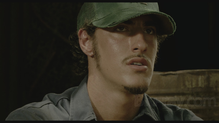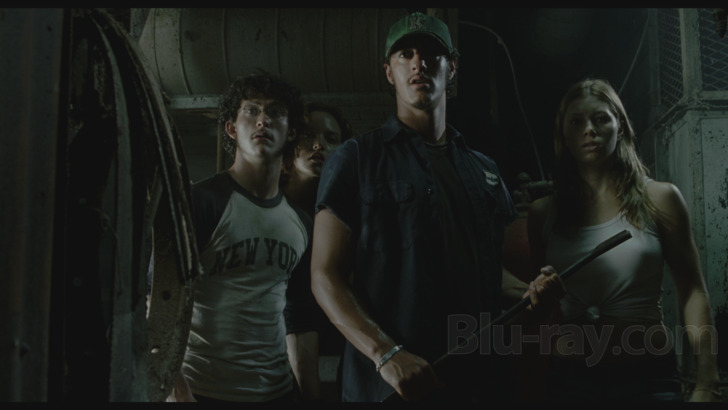 The Texas Chainsaw Massacre (2003) has been restored by Arrow Films and is presented in its original aspect ration of 1.85:1 with 5.1, 7.1 and stereo audio.Marty was generally pretty pleased with the now "ancient" 2009 1080 Blu-ray, but in just one minor if salient sign of improvements overall in this new version is the slight adjustment to correct the aspect ratio. This new 4K version can also offer what I'd consider to be above average increases in fine detail, sometimes even in rather dark lighting conditions. Marty in fact mentioned the sweaty and stubbly faces of the guys in the opening van sequence, but for again admittedly picayune but still illustrative examples of excellent fine detail renderings, pay attention to things like the light downy hair on Mike Vogel's upper arm (which is indeed sweaty). Another good example comes later when faces are seen through a screen door, and the resolution of the screen is flawless. The Dolby Vision and HDR grades may frankly not have a bunch to play with, so to speak, referencing again Marty's original comments about the kind of sickly and dowdy palette that's often on display. In that regard, that opening van scene and some later moments have an almost sepia undertone to the largely beige, gold and ochre hues. The muted palette is still muted here, but there are some interesting new highlights in green tones in particular, tones that actually tend to suffuse a lot of the material once the carnage gets underway. The increased resolution can make for some almost swampy going in the opening intentionally heavy grain of the "archival" black and white documentary footage, so maybe have some Dramamine handy, but otherwise grain resolves tightly. In perusing the IMDb I noticed several different stocks were utilized, and perhaps that can account at least in part for some slight variances in both grain structure and clarity levels.