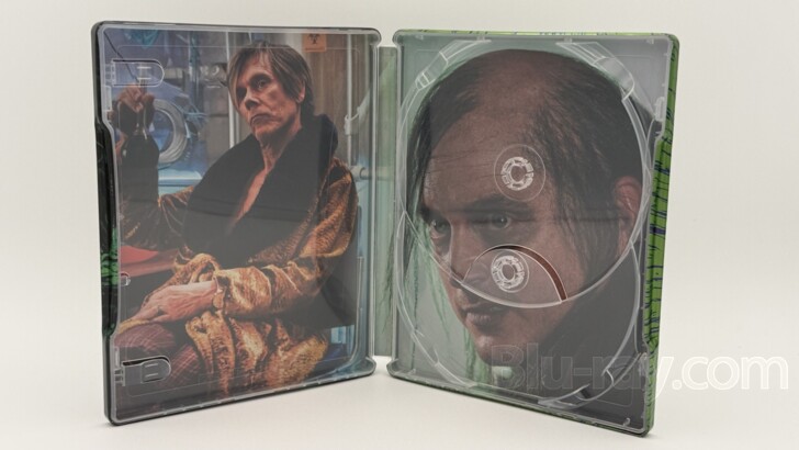 it, the glossy SteelBook with metallic green highlights is revealed. The main image is simple but effective. It's a close-up of the film's hero in all of his
