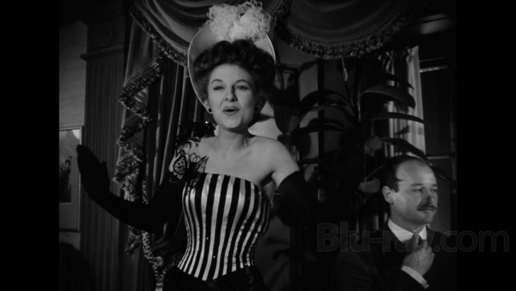 Equally impressive is the DTS-HD 2.0 Master Audio mix, which as usual offers a split two-channel presentation of the original mono audio for wider playback. (Those looking to keep it 100% authentic can always set their receivers to a forced center-channel output, but I almost never do this.) Dialogue, background effects, and the bracing original score by composer Frederick Hollander -- best known for his work on Here Comes Mr. Jordan, The Talk of the Town, and Christmas in Connecticut -- all sound excellent, and only trace levels of age-related wear-and-tear remain. In all respects, it's equally solid work and really adds to the film's occasionally intense atmosphere.