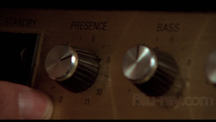 Like the very best 4K remasters, Criterion's treatment of This Is Spinal Tap inarguably gives the film a more authentic appearance in the areas of film grain and stability, bringing its look much closer to a theatrical-grade presentation than any previous home video editions. Regarding aspect ratios, it does indeed differ slightly from Criterion's 1998 DVD in that the film is now framed at the generally accepted "original" 1.85:1 rather than the DVD's slightly taller 1.70:1 but, minor framing differences aside, it absolutely catapults past both that disc and MGM's 1.85:1 2009 Blu-ray from every conceivable perspective. The combination of source materials unavoidably leads to a bit of detail and grain fluctuation here and there, as does the inclusion of purposely degraded music video footage such as "Gimme Some Money", which looks to mimic a kinescope, and as well as " (Listen to the) Flower People" and its fuzzy videotape origins. These are small and mostly purposeful speed bumps during what's otherwise a very consistent satisfying presentation, one that combines respectable fine detail (again, relative to the source material) and terrific color representation, especially in regards to flamboyant costumes and clothes, stage makeup, and of course vivid concert lighting.The HDR layer, which runs in either HDR10 or Dobly Vision depending on your setup, breathes new live into these colors without compromising integrity while also tightening up some of the trickier moments where blown-out whites and deep blacks might otherwise threaten adjacent fine detail. While there are moments where the picture seems a touch too dark overall, that may very well be Spinal Tap's intended look and a more accurate representation than the previous DVD and Blu-ray's potentially boosted levels. In all regards, it's a damn fine presentation of this low-budget wonder and, all things considered, only aids the film's effectiveness and time capsule appeal.