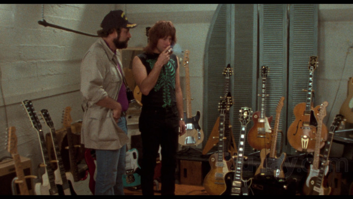 As always, you can refer to my review of the 4K edition for my thoughts on the film's visual aesthetic, which in this case is that of an authentic-looking documentary whose filmed roots are nicely conveyed on this 1080p/SDR transfer. Fine detail and textures really aren't that far off between both versions unless you're running it on an extremely large display, as Spinal Tap's 16mm roots obviously aren't loaded with tack-sharp clarity. Where most will spot differences are in the areas of color representation and disc compression; regarding the former, they look accurate to the source and all hues are nicely saturated with minimal to no bleeding, though the lack of HDR10 (with or without Dobly Vision) doesn't push some of its most colorful moments -- which, believe it or not, aren't all concert-related -- into the areas they reach on the UHD. This is to be expected, as are occasional amounts of macro blocking visible during the most visually complex and grain-heavy sequences as well as light posterization in darker grain fields; neither anomaly is totally out of bounds for Criterion and other labels, but to be fair these sporadic issues are largely kept in check and won't be all that visible in-motion and especially on a small to medium-sized display. All things considered, this is very good work for the format and still greatly improves upon MGM's respectable 2009 Blu-ray, enough so that fans can comfortably upgrade for the visual merits alone. Luckily, there are even more reasons to come.