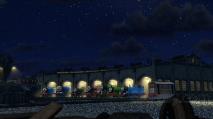 Three fairly lame extras are included which might delight the very young and undisrciminating. The Search for Thomas game offers a variety of locations on Sodor, each of which has a question-clue about Thomas' whereabouts which requires a correct answer to move forward (don't worry, it's pretty basic stuff that even a 4 year old should be able to handle). Two karaoke tracks are also included, the country-western Misty Island Rescue (1080i; 2:08) and the swing based Sir Topham Hatt (1080i; 2:09).