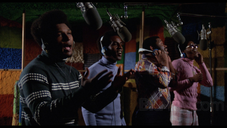 The DTS-HD 2.0 Master Audio mix follows suit with a similarly clean and polished replication of its mono source in a split two-channel container. No obvious hiss, pops, or distortion could be heard along the way, just clean dialogue -- some of it noticeably ADR'd -- with healthy dynamics for gunshots (there's unlimited ammo, apparently), explosions, stock fighting sound effects, and of course the warm, occasionally funky, and always era-specific music cues including three oft-repeated songs by The Impressions, seen above. Another rock-solid presentation here, hands down.