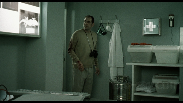 The image presentation (1.85:1 aspect ratio) for "Timecrimes" is listed as "presented in Dolby Vision and newly scanned and restored from its 35mm DI negative." Already a grungy movie to begin with, "Timecrimes" enjoys some refreshed detail during the viewing experience, exploring decent skin particulars on the cast, who offer hair, wounds, and exposure throughout the endeavor. Exteriors maintain interesting depth with tours of the forest and action around living spaces. Interiors preserve decorative additions, visiting science labs and domestic rooms. Costuming remains passably fibrous. Color is strong, with defined greenery and pink bandages on the main character. Other bloodshed remains red. Skin tones are natural. Clothing and cars offer distinct primaries, while household and science lab visits retain bright whites and richer browns. Blacks are deep, preserving evening activity. Highlights are tasteful. Grain is nicely resolved. Source is in good condition, with a few very minor moments of damage.