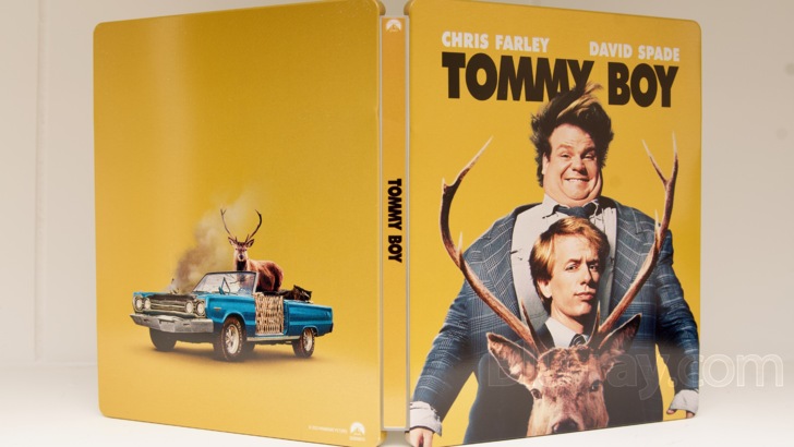 Paramount has widely released a UHD SteelBook packaging variant for the hilarious 1995 Comedy 'Tommy Boy' starring Chris Farley and David Spade, directed by Peter Segal. The disc and digital content is identical to that found in the UHD wide release. This is the third time that Paramount has issued the film in this SteelBook packaging (see the 2020 FYE release and the 2022 wide release). See the 'Special Features and Extras' section of the review below for more on the SteelBook's look and feel.