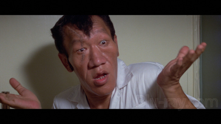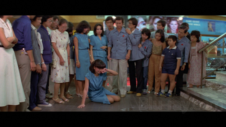 One minute of footage was removed from Cantonese language versions due to reference to Deng Xiaopeng, the leader of the People's Republic of China at that time. This scene was kept for the Mandarin language version released in Taiwan. If you play the film in Cantese with the additonal scene, it will briefly switch to Mandarin and back again, as the Cantonese audio is partially lost.Since this disc's authoring prevents easy "toggling" between tracks, it's not as easy here to accurately describe any differences in amplitude and the like, but I will say there was nothing in watching the two (and arguably three) versions on this disc that struck me as distinctly different other than the dialect. The virtually nonstop sound effects and/or scoring choices may show the same kind of thin and even brash high end at times as on several other discs in this set, but fidelity is generally quite winning, and there's no actual damage of any kind to report. Dialogue is rendered cleanly and clearly throughout. Optional English subtitles are available.