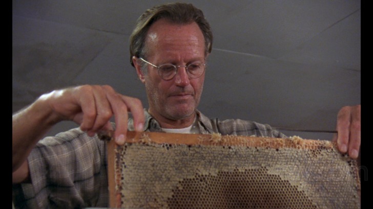 Nunez is mercifully content to focus on Ulee and his mounting problems, embracing parental routine that finds the older man futilely trying to control Casey’s newfound interest in dating sketchy men, while Penny remains his constant companion, learning the ins and out of honey production alongside her grandfather, who’s trying to keep his legacy business afloat as trouble disrupts the harvest. Procedural moments with Ulee and his hives is almost enough to support the picture, watching Nunez celebrate the steps of hard work and the soothing pour of liquid gold. A few bee-taming moments are included as well, contributing to the width of Ulee’s temperament and his patience, which comes into play later in the movie. The other half of “Ulee’s Gold” is more formulaic, but not offensively so. Eddie and Ferris are after quick money, allowing Nunez a chance to create tension through hushed threats and snowballing acts of intrusion, while scenes of Helen’s withdrawal fight test the characters in an organic way, bringing out the worst in Ulee and his grandkids before they can make peace with the situation and restore any type of order. Tone is mostly consistent, with hysterics avoided to find more realistic responses to difficult life challenges, keeping “Ulee’s Gold” wonderfully human.