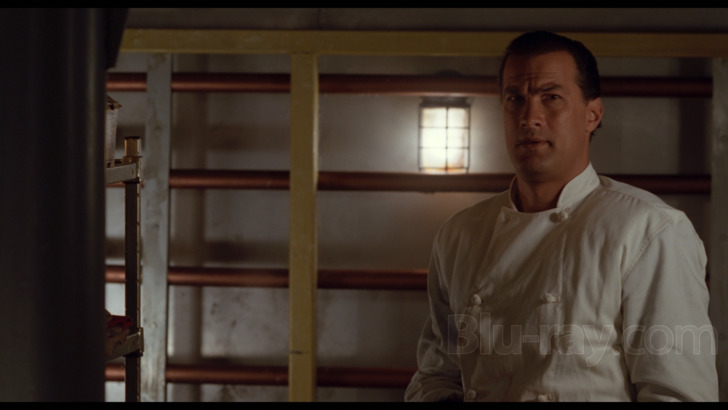 Under Siege features Dolby Atmos and LPCM 2.0 options, both easily outdoing the lossy Dolby Digital 5.1 track on Warner Brothers' first 1080 release. The stereo track is actually rather nicely widely imaged, especially in some of the action sequences, but the Atmos track significantly opens up the proceedings, both with regard to the ambient environmental effects both inside and outside the ship, and also with regard to Gary Chang's enjoyable score. The Atmos track also provides a much more convincing low end overall, something the becomes more important once all the things that go boom start going boom. Dialogue is rendered cleanly and clearly throughout. Optional English subtitles are available.