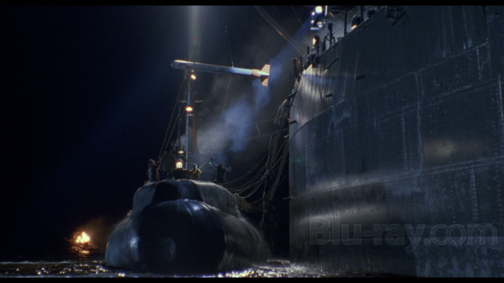 Under Siege has been restored by Arrow Films and is presented in its original aspect ratio of 1.85:1 with stereo and Dolby Atmos audio mixes.This is another great looking 4K upgrade from Arrow, one that offers some interesting highlights courtesy of the HDR / Dolby Vision grades and which provides some subtle but observable improvements in fine detail from Arrow's perfectly excellent 1080 presentation. Kind of surprisingly some of the establishing shots of the ship (all evidently taken in one day as the Missouri pulled into San Francisco) are just a bit tamped down, palette wise, especially in the opening optically printed credits sequence, but once that is dealt with, suffusion improves markedly and there are some very vibrant hues across the entire spectrum. Some of the most evocative content probably comes somewhat late in the film, when the darkened ship is lit with various hues, and everything from blues and purples to some of the almost orange-sepia tones in scenes featuring Seagal in particular really pop impressively. HDR and/or Dolby Vision may not frankly offer that much extra shadow detail, and perhaps just a little surprisingly there are minor hints of crush in some of the "war room" material vis a vis the black uniforms against black backgrounds. Color temperature generally is much improved over the old kind of yellowish 1080 release from Warner Brothers. Detail levels are consistently impressive throughout, and some of the fine detail on the ship sets is particularly precise looking. Grain resolves tightly for the most part, but some of the rougher looking moments in the darkest material are probably even grittier looking at this resolution.