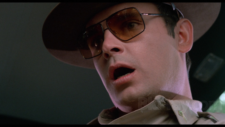 This 4K restoration was produced by Severin Films, on behalf of Severin Films and RM Films International.The back cover of this release also touts that this film, like the other Meyer offerings from Severin, is being offering in high definition and UHD for the first time courtesy of this release. Whatever passing qualms you may have about the quality of the actual film, this is another standout presentation of Meyer's canon from Severin and the Russ Meyer Trust. There are a few minor variances in color temperature, clarity and grain structure which are frankly probably a bit more noticeable in the increased resolution this format offers, as well as the HDR grade, but, wow, when this transfer pops, it really pops. A lot of the outdoor material is gorgeously saturated, and primaries are often even more astoundingly suffused than they are in the already excellent 1080 presentation from Severin. The opening moments in Hitler's domain are a bit on the dowdy brown side, and occasionally that same just slightly faded quality attends a few of the outdoor scenes as well. Fine detail sees some improvement in this version as well, though it might be comically suggested that a lot of that tends to be in things like, well, pubic hair, featured prominently throughout the film in extreme close-ups. There is some very minor age related wear and tear, mostly in the form of virtually miniscule nicks and the like. Grain resolves naturally, though the film does have its fair share of opticals where grain can spike noticeably, including some brief split screen moments.