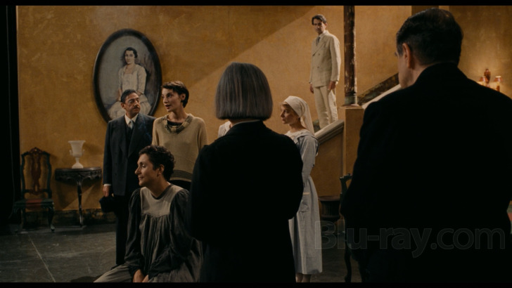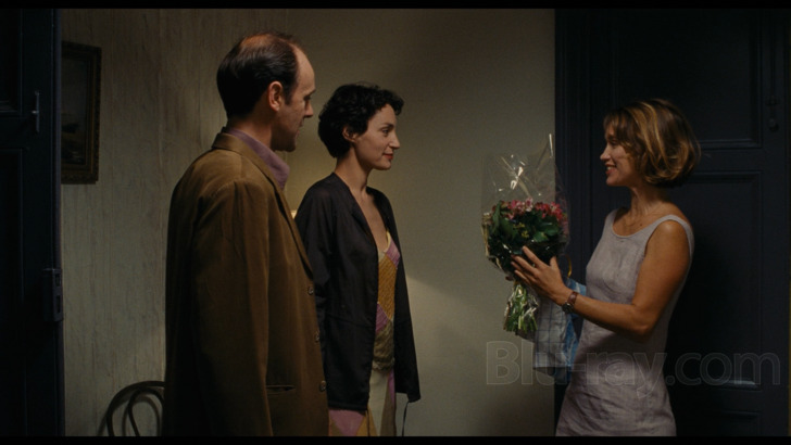 Va Savoir, filmed in Paris in August - September 2000, was restored in 4K in 2022 by Les Films du Veilleur and La Cinémathèque française at the Hiventy Laboratory, from the original negative and 35mm magnetic tracks under the supervision of Irina Lubtchansky. Colour grading: Pauline Bassenne; Digital Restoration: Frédéric Hedin; Sound Restoration: Aymeric Gavend; Project Supervision: Lisa Soulie and Audrey Birrien.I frankly noticed no major differences between the two presentations, and I've included some "near frame" duplicate screenshots from both versions so that those interested can do a little side by side comparisons. Both of these transfers have a really gorgeous accounting of an often subtle but still evocative palette, one that can often favor burnished yellows and bronzes. Detail levels are typically excellent throughout, perhaps faltering only very slightly in some less well lit material, as in some of the on stage scenes before full lighting comes up. But even these moments can offer some surprising fine detail levels when Rivette chooses to get closer than merely midrange framings. Grain resolves tightly throughout and I noticed no real signs of even any minimal age related wear and tear.